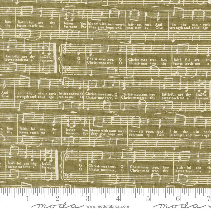 Berry and Pine Sage fabric by Moda—perfect for quilting and crafts. Features festive musical notes design, adding a classic holiday touch to your projects. High-quality and easy to sew.