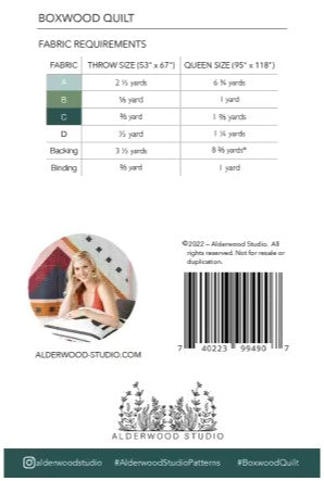 The boxwood pattern uses strips and small pieces to create an overlapping, maze-like effect inspired by the structure of formal Renaissance gardens. This advanced beginner pattern is straightforward and easy to assemble as long as you have an accurate seam allowance and pay close attention to the orientation of the diagrams! This pattern is available in throw or queen size, and could be easily adapted to a king with some small side borders.
