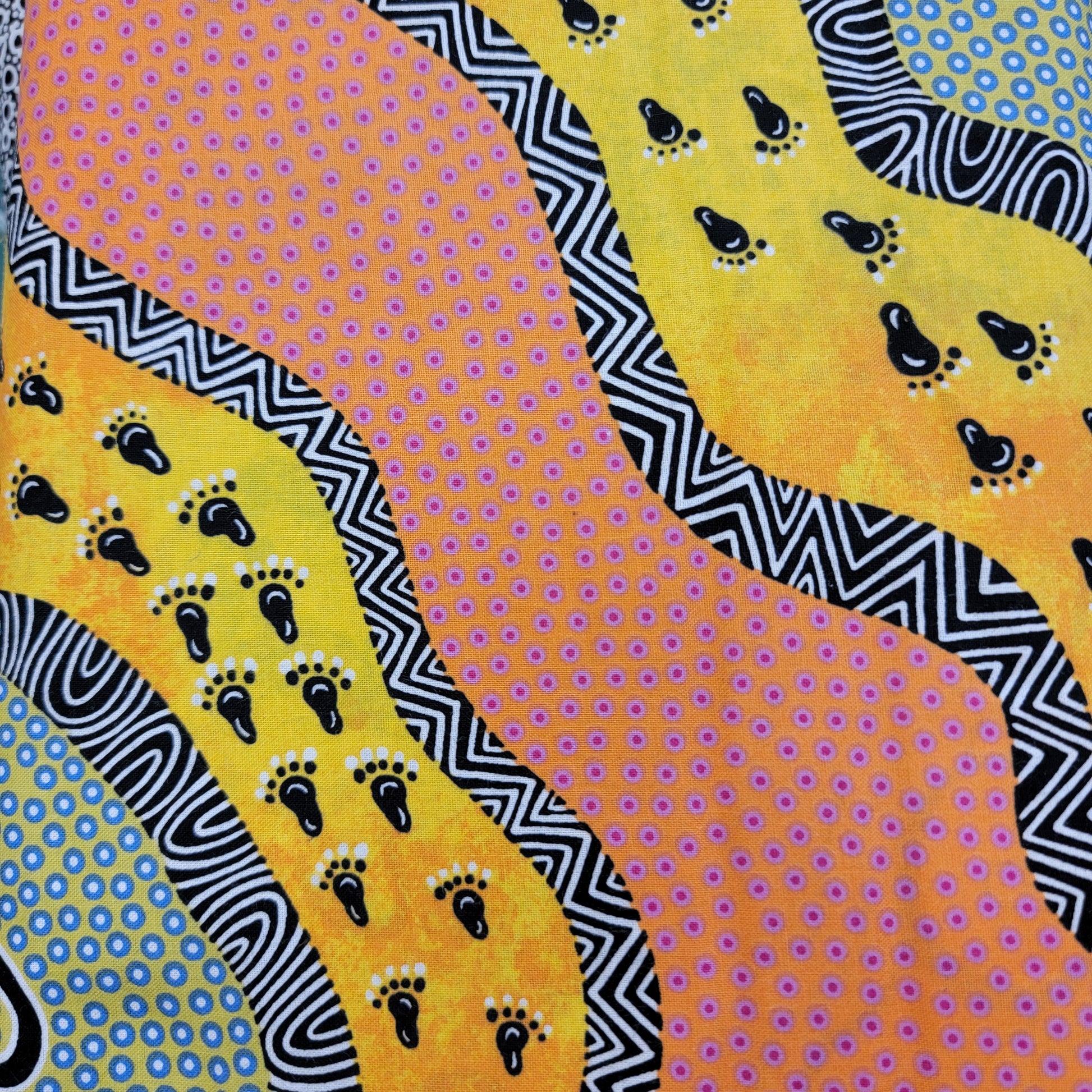 Celebrate vibrant culture with the Mulaka Hunting - Yellow fabric, featuring lively Aboriginal prints that bring a playful spirit to your quilting projects. Its bright yellow backdrop enhances traditional motifs, perfect for adding a splash of joy and storytelling to your creations. Ideal for those who love infusing heritage-inspired charm with a fun twist.