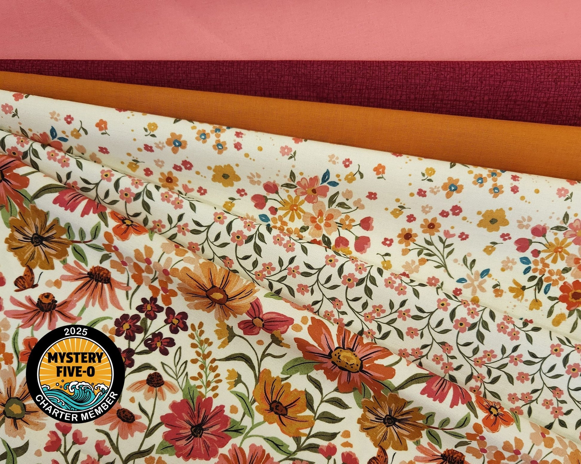 Our Mystery Five-0 Fat Quarter Bundles are essential for tackling the Mini-Mystery project. We've handpicked and curated each bundle with a colorful mix of high-quality fabrics designed to make your mystery quilt pop.
