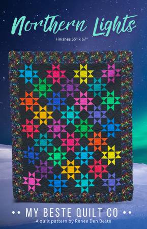 Transform your home into a celestial haven with the Northern Lights quilt pattern by My Beste Quilt Co. This vibrant design captures the mesmerizing beauty of the aurora borealis, bringing a splash of color and artistry to your space. Ideal for quilting enthusiasts who crave a unique and colorful project, this pattern offers a creative challenge with its intricate star motifs and bold hues. Measuring 55" x 67", it's perfect for adding a cozy, artistic touch to any room. Dive into a world of color and creativity with the Northern Lights quilt pattern, and let your home shine with the magic of the cosmos.