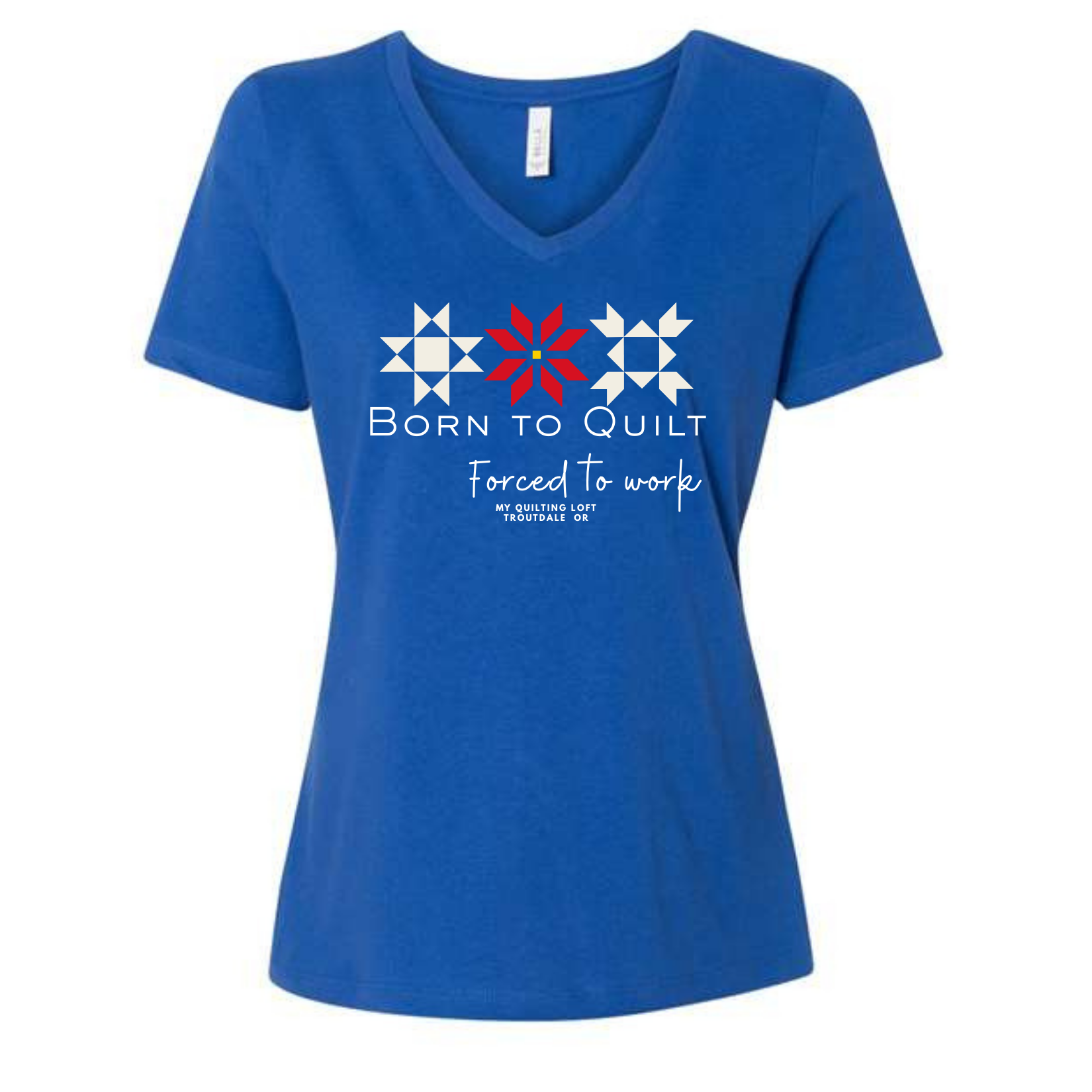 The design says it all: Born to Quilt… Forced to Work. (Because let’s be real—quilting will always be our first love.) The bold red, white, and blue quilt blocks make it perfect for stitching days, shop hops, retreats, or just running errands while proudly repping your quilty side.