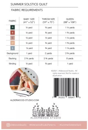 The Summer Solstice pattern uses log cabin blocks and curves to create an overlapping mountain range rising above a set of curves that evoke either the sun or phases of the moon - you decide! This intermediate or advanced beginner pattern comes together faster than you’d expect, and isn’t too challenging as long as you handle the bias edges carefully. Choose from a baby, throw, or queen size.